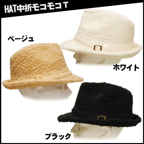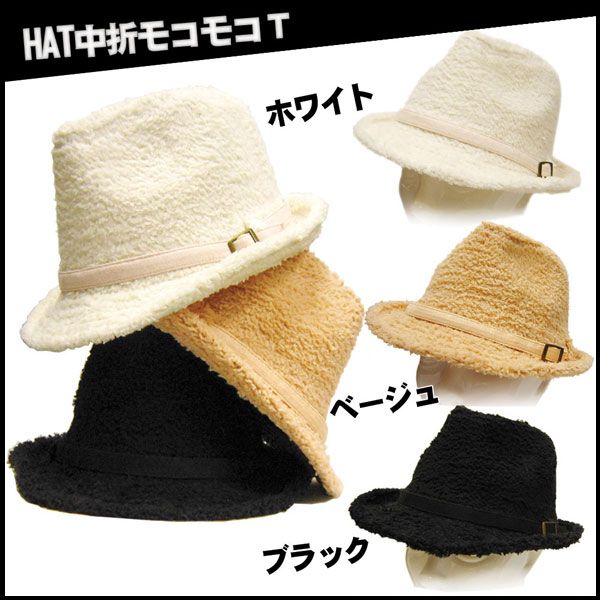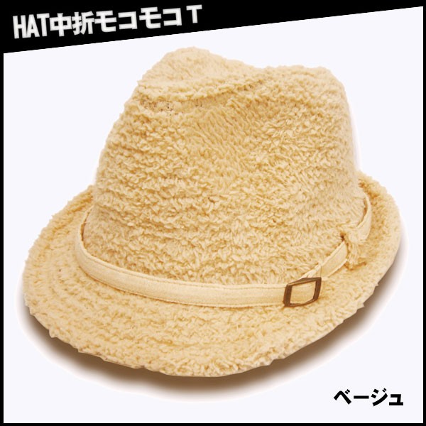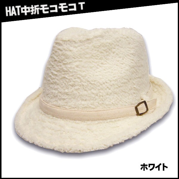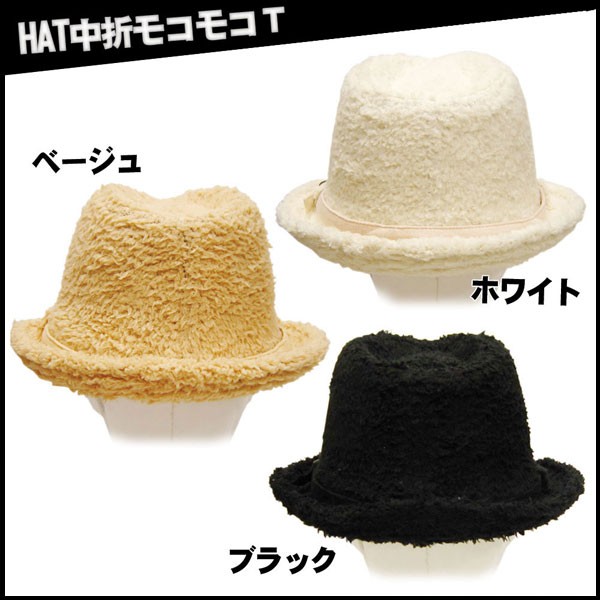 (帽子ハット中折れ)ハット中折モコモコ T 男女兼用