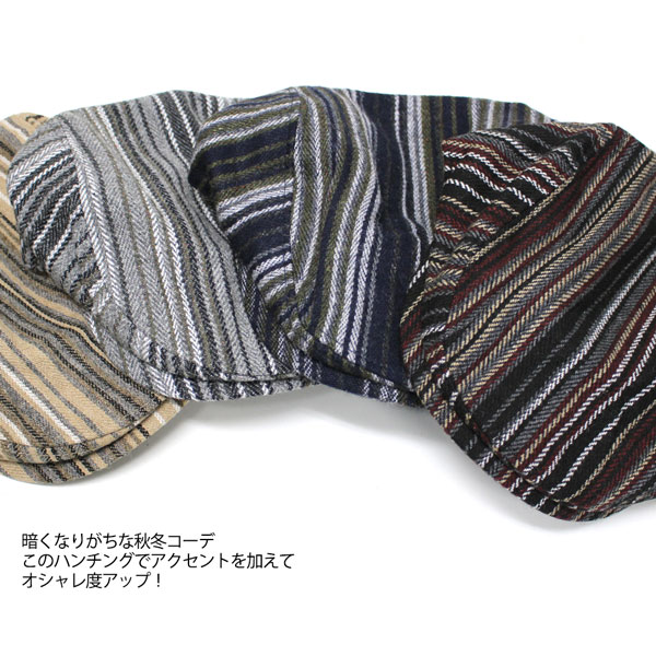 暗くなりがちな秋冬コーデにこのハンチングでアクセントを入れてオシャレ度アップ。