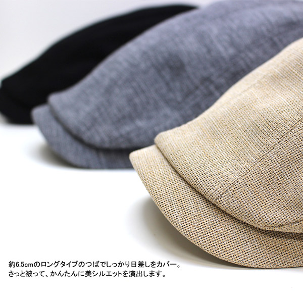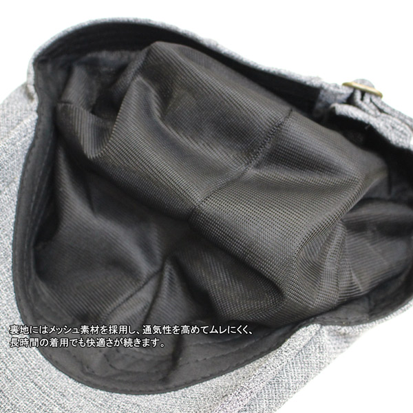 麻混素材と裏地のメッシュ仕様が、蒸し暑い季節でも快適な被り心地を実現。