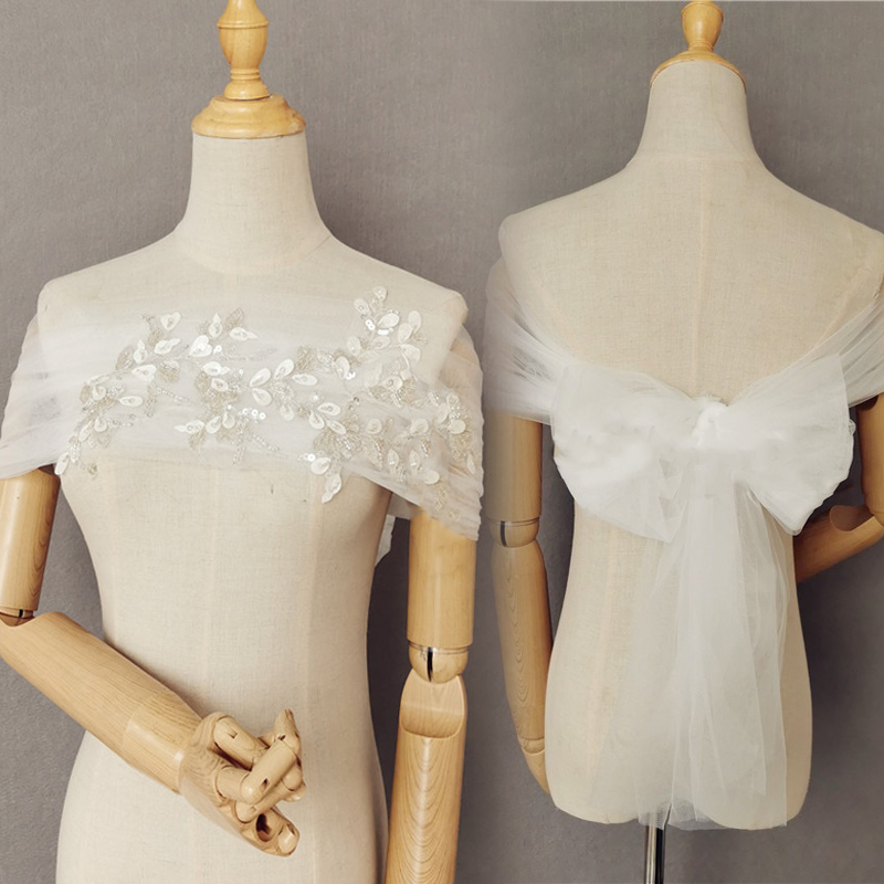 ドレスアレンジ ウェディングボレロ ウエディングボレロ ショール ストール リボン スパンコール 花嫁 結婚式 二次会 披露宴 お色直し 前撮り オフホワイト