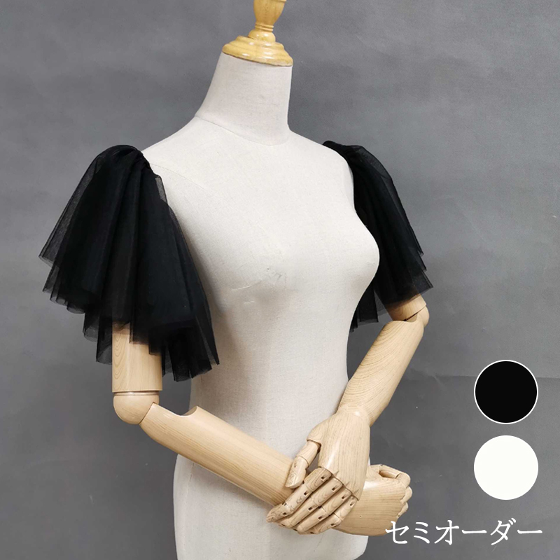 ドレスアレンジ 取り外し袖 付け袖 つけ袖 チュール フリル 二の腕カバー フォーマル 花嫁 結婚式 二次会 披露宴 お色直し 前撮り 白 黒 ブラック オフホワイト