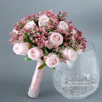 ブライダルブーケ ラウンドブーケ シャンパン ピンク ビジュー バラ ウエディングブーケ ウェディング 花嫁 造花 結婚式 二次会 披露宴 挙式 前撮り