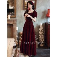カラードレス ロングドレス 演奏会 コンサート ステージ 声楽 ベルベット 二次会 安い 半袖 コンクール お呼ばれ フォーマルドレス 10代 20代 成人式 卒業式