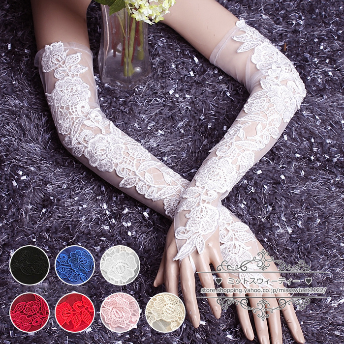 即納 ウエディンググローブ ロンググローブ ウェディング ブライダル 結婚式 花嫁 二次会 パーティー レース 花 黒 赤 ピンク ブルー フィンガーレス