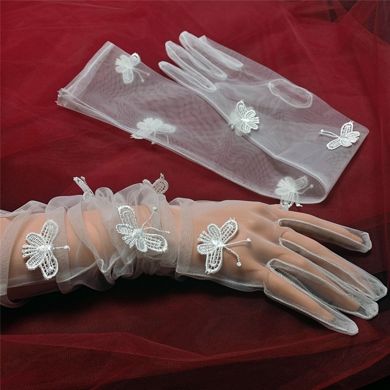 ウエディンググローブ ロンググローブ ウェディング手袋 ブライダル 結婚式 花嫁 二次会 披露宴 写真撮り パーティー オフホワイト 蝶 バターフライ