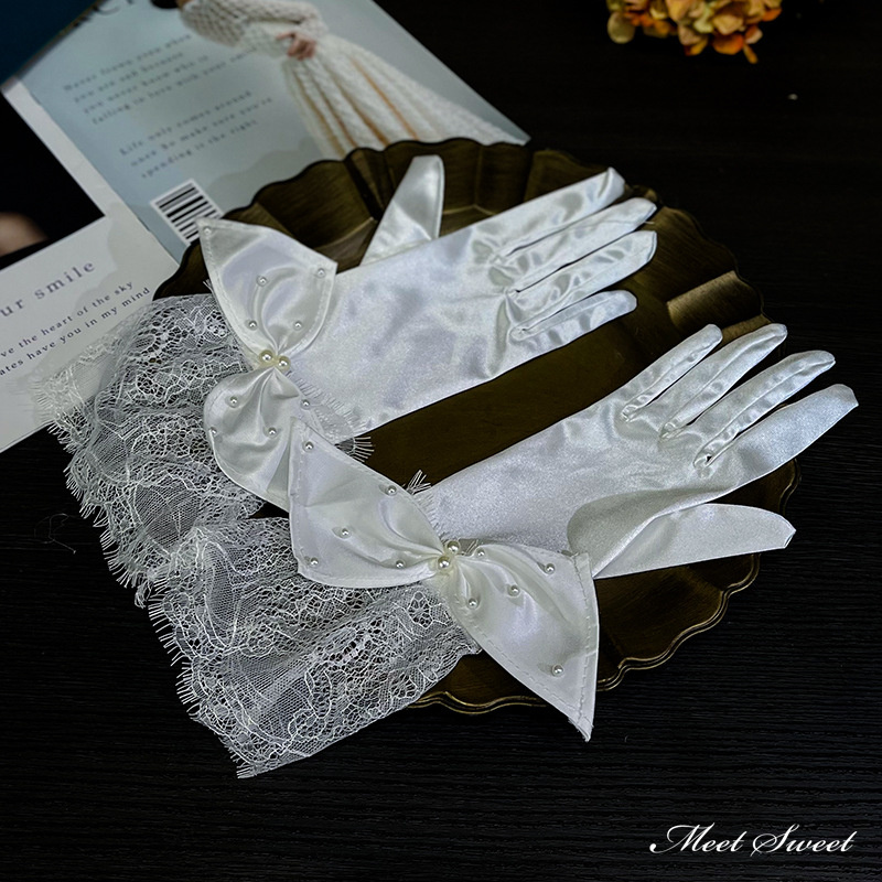 ウェディンググローブ ウエディンググローブ ミディアムグローブ リボン サテン レース ウェディング 手袋 ブライダル 結婚式 花嫁 二次会 披露宴 前撮り