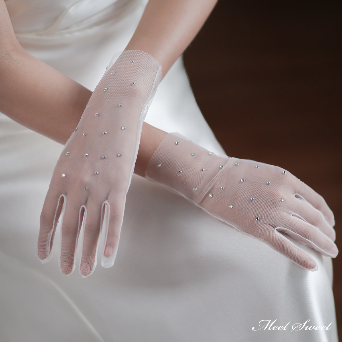 ウェディンググローブ ウエディンググローブ ショートグローブ チュール ウェディング 手袋 ブライダル 結婚式 花嫁 二次会 披露宴 前撮り ラインストーン