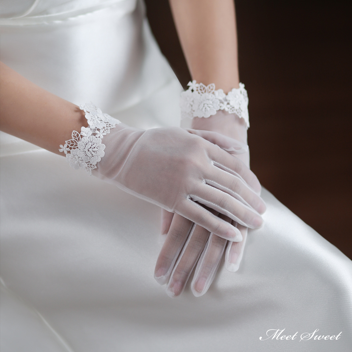 ウェディンググローブ ウエディンググローブ ショートグローブ 指あり チュール 花 ウェディング 手袋 ブライダル 結婚式 花嫁 二次会 披露宴 前撮り