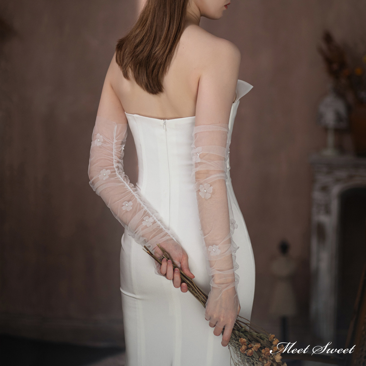 ウェディンググローブ ウエディンググローブ ロンググローブ 指なし フラワー チュール ウェディング 手袋 ブライダル 結婚式 花嫁 二次会 披露宴 前撮り