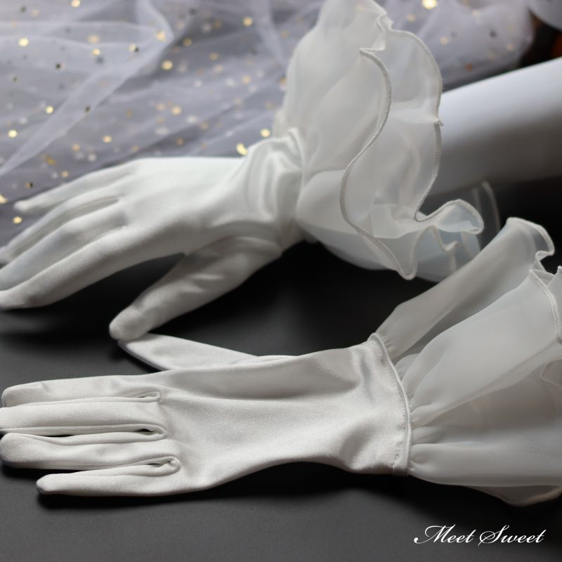 ウェディンググローブ ウエディンググローブ ミディアムグローブ サテン フリル 指あり ウェディング 手袋 ブライダル 結婚式 花嫁 二次会 披露宴 前撮り