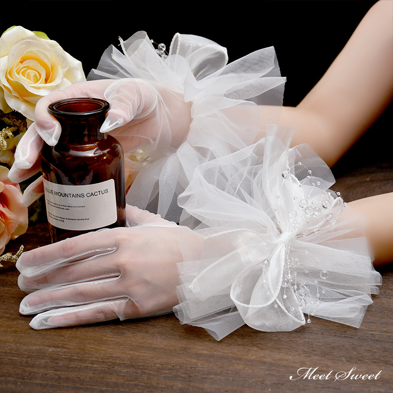 ウェディンググローブ ウエディンググローブ ショートグローブ フリル リボン 指あり ウェディング 手袋 ブライダル 結婚式 花嫁 二次会 披露宴 前撮り