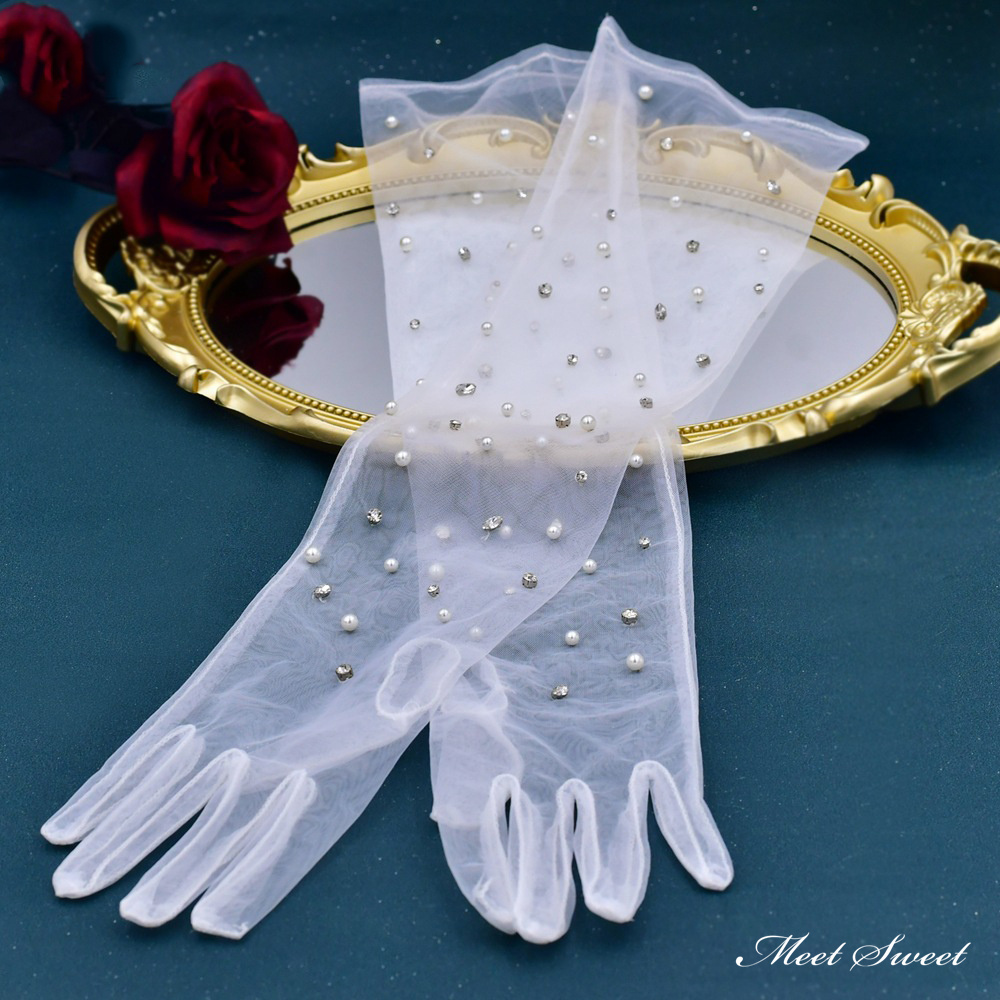 ウェディンググローブ ウエディンググローブ ロンググローブ 指あり チュール パール スパンコール 手袋 ブライダル 結婚式 花嫁 二次会 披露宴 前撮り