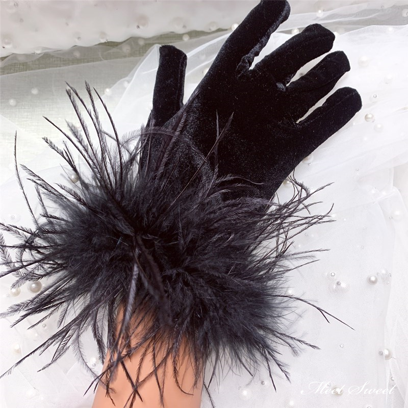 ウェディンググローブ ウエディンググローブ ショートグローブ ブラック フェザー 指あり ウェディング 手袋 ブライダル 結婚式 花嫁 二次会 披露宴 前撮り