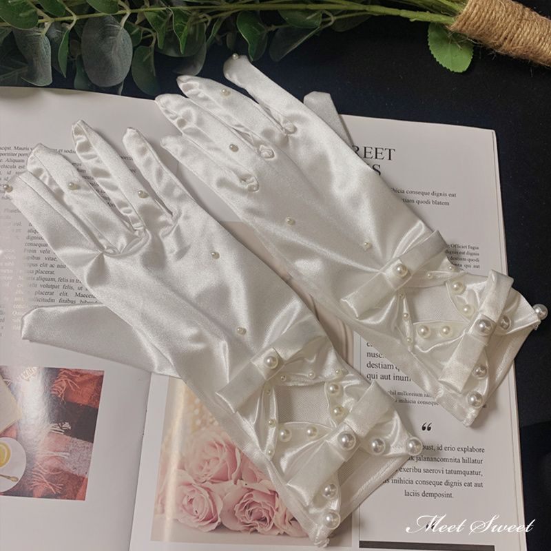 ウェディンググローブ ウエディンググローブ ショートグローブ サテン リボン パール ウェディング 手袋 ブライダル 結婚式 花嫁 二次会 披露宴 前撮り