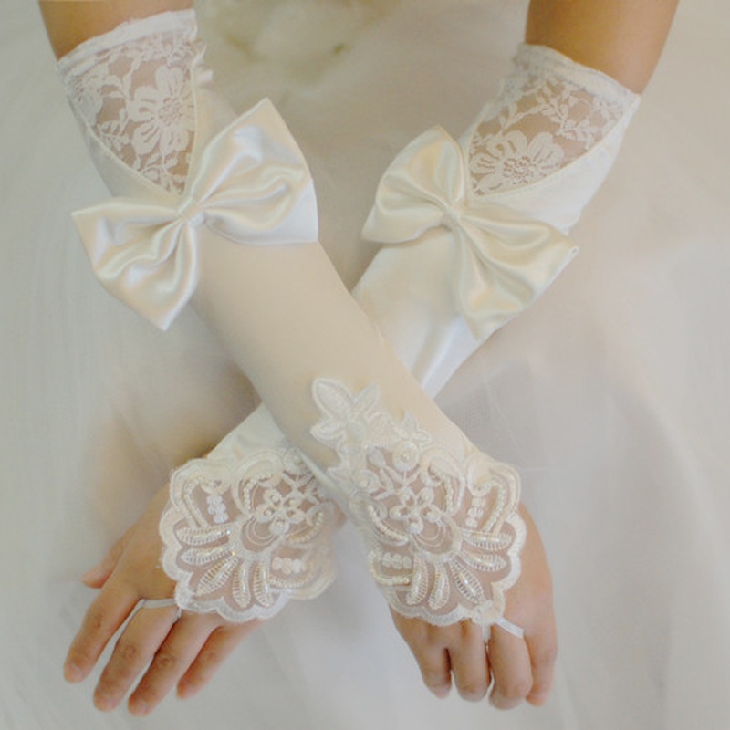 ウエディンググローブ 結婚式 glove リボン ミディアム グローブ レース サテン 手袋 二次会 演出 花嫁 ウエディング フィンガーレス 白 秋冬