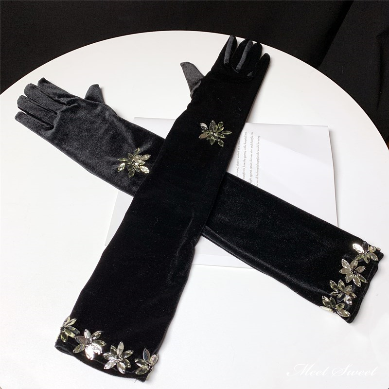 ウェディンググローブ ウエディンググローブ ロンググローブ ブラック ベルベット 指あり ウェディング 手袋 ブライダル 結婚式 花嫁 二次会 披露宴 前撮り