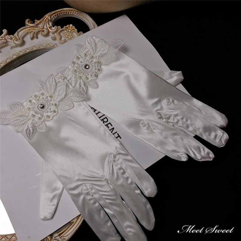 ウェディンググローブ ウエディンググローブ ショートグローブ 指あり 花刺繍 サテン ウェディング 手袋 ブライダル 結婚式 花嫁 二次会 披露宴 前撮り