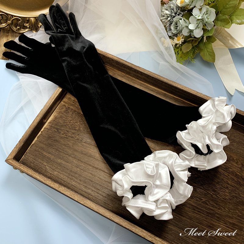 ウェディンググローブ ウエディンググローブ ロンググローブ 指あり ベルベット ブラック ウェディング 手袋 ブライダル 結婚式 花嫁 二次会 披露宴 前撮り