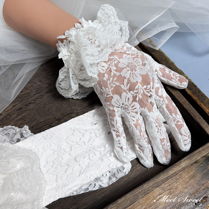 ウェディンググローブ ウエディンググローブ ショートグローブ レース 花柄 フリル 指あり ウェディング 手袋 ブライダル 結婚式 花嫁 二次会 披露宴 前撮り