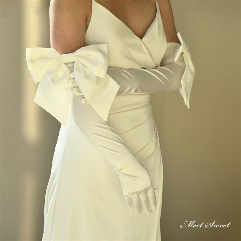 ウェディンググローブ ウエディンググローブ ロンググローブ 肘上 サテングローブ リボン ブライダル 結婚式 花嫁 二次会 披露宴 前撮り 白 オフホワイト