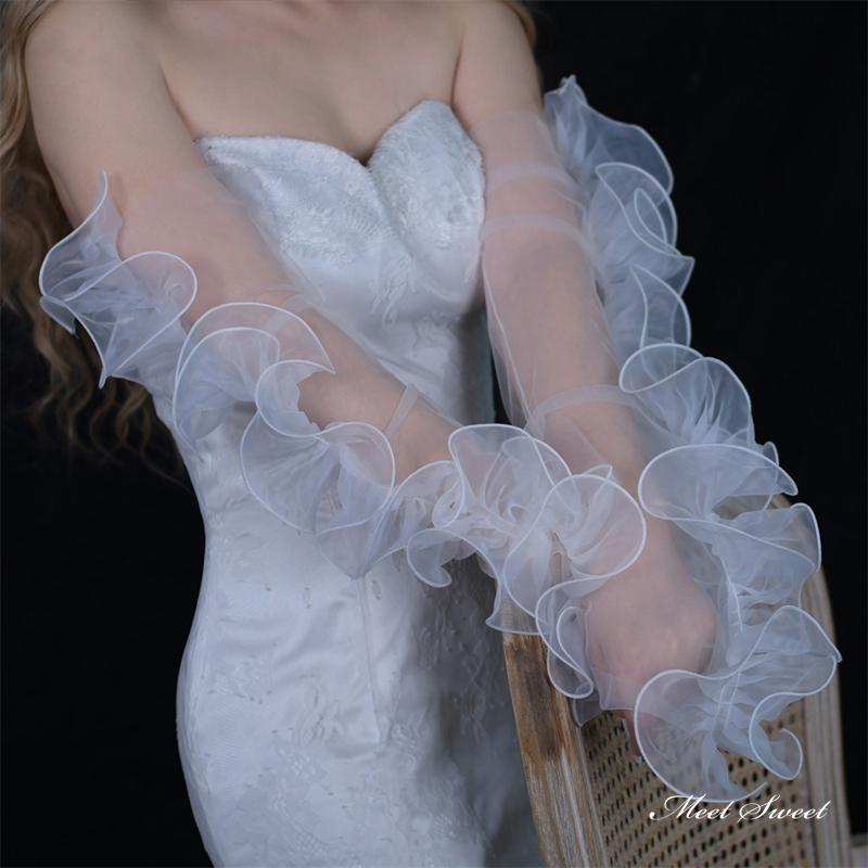 ウェディンググローブ フリル ウエディンググローブ 二の腕カバー チュール ブライダル 結婚式 花嫁 二次会 披露宴 前撮り 白 ホワイト 撮影 ドレスアレンジ