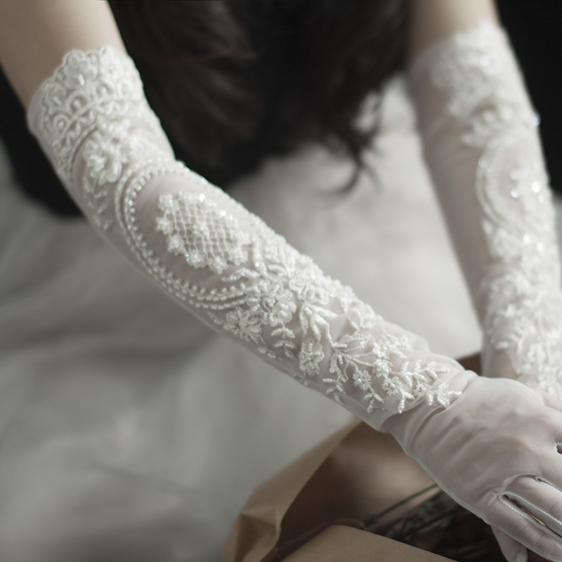 ウエディンググローブ ロンググローブ ウェディンググローブ レース ビーズ レトロ ブライダル 結婚式 花嫁 二次会 披露宴 前撮り クラシック 手袋