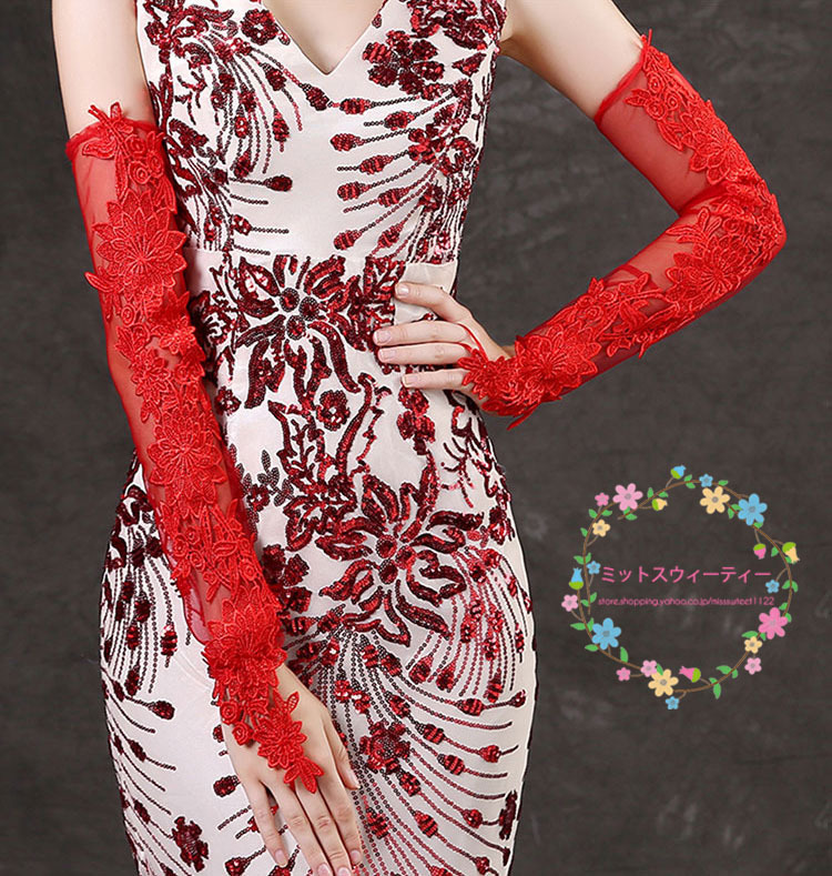 ウエディンググローブ 結婚式 glove ロング 赤 レッド グローブ レース 手袋 小物 二次会 演出 花嫁 ウエディング パーティー 結婚式 小物 ステージ衣装