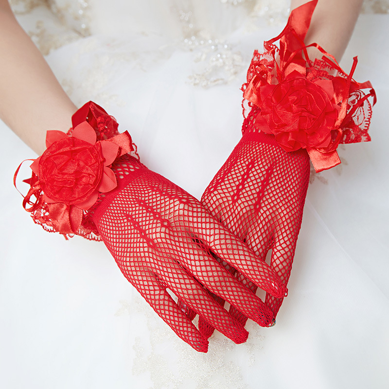 ウエディンググローブ レッド ホワイト ショートグローブ ウェディング手袋 ブライダル 結婚式 花嫁 二次会 披露宴 前撮り パーティー オフホワイト