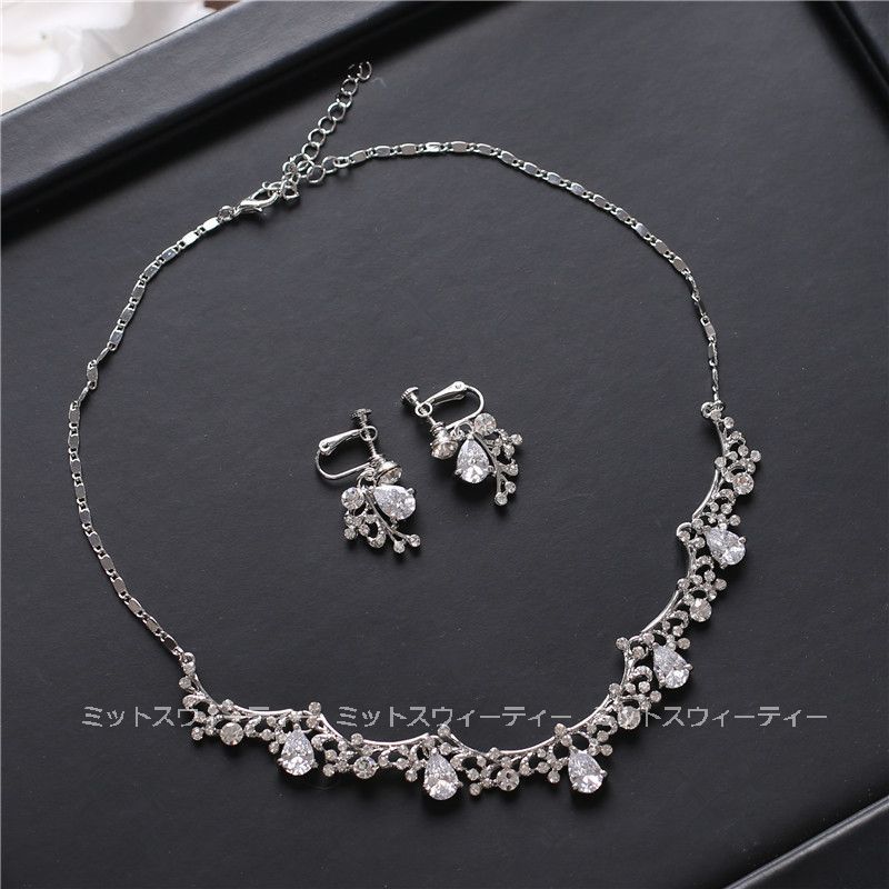 ウエディング ネックレス+イヤリング セット アクセサリー シルバー 花嫁 ウェディング 結婚式 前撮り ブライダル 二次会 前撮り チャペル 海外挙式 フォマール