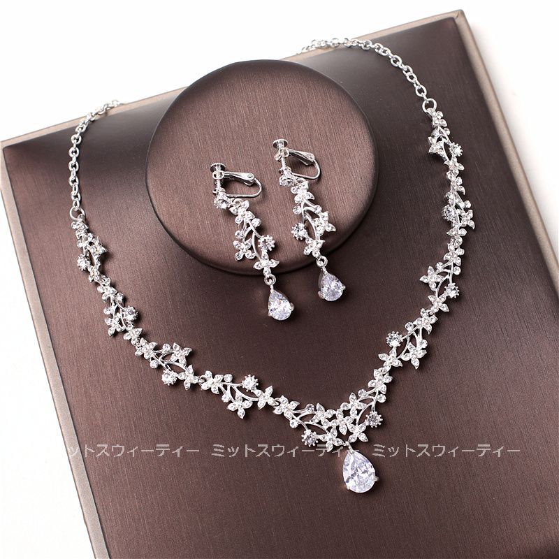 即納 ウェディングネックレス イヤリング シルバー ラインストーン ステージ パーティー 舞台アクセサリー 結婚式 二次会 発表会 花嫁 披露宴 ウエディング小物