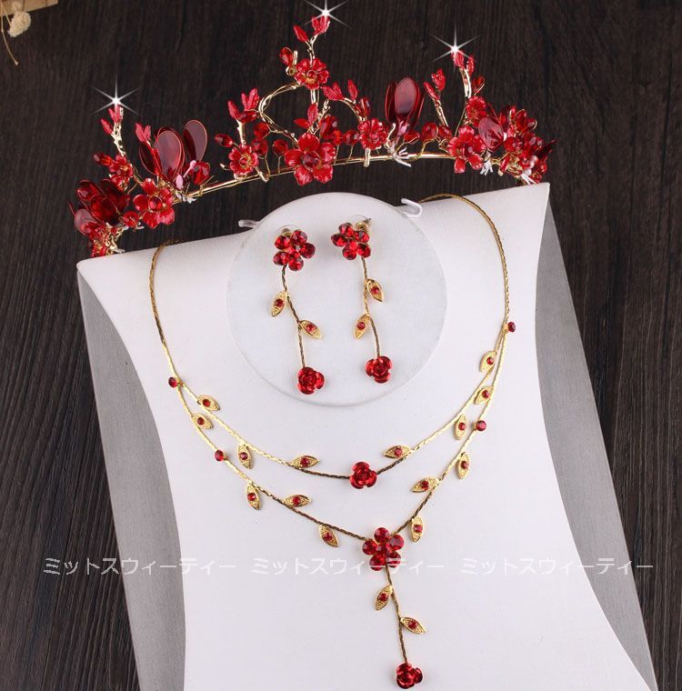 ウェディング ティアラ ネックレス イヤリング ピアス 赤 フラワー 花 パーティー アクセサリー 演奏会 結婚式 二次会 発表会 花嫁 イベント 成人式 卒業式