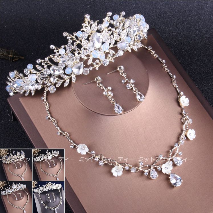ティアラ ネックレスセット 花嫁 アクセサリー ライトゴールド 演奏会 発表会 パーティー 結婚式 二次会 ブライダルジュエリー ウェディング ウエディング 上品