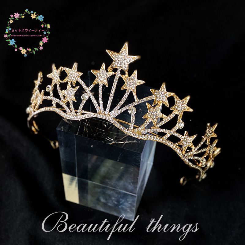 ウェディング ティアラ クラウン 安い ヘッドドレス 星 ブライダル 髪飾り パーティー 二次会 ヘアアクセサリー 披露宴 花嫁 結婚式 誕生日ティアラ 2点セット