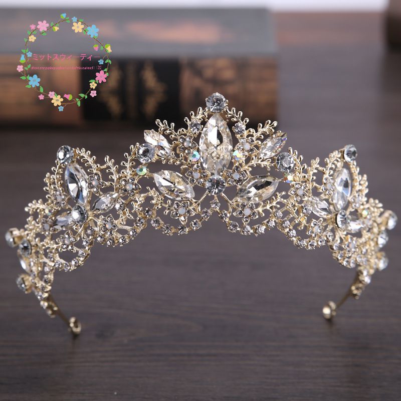 ティアラ ウエディング レディース 髪飾り 花嫁 結婚式 ヘッドドレス ブライダル パーティー 二次会 コスプレ ラインストーン 舞台用 ステージ ライトゴールド