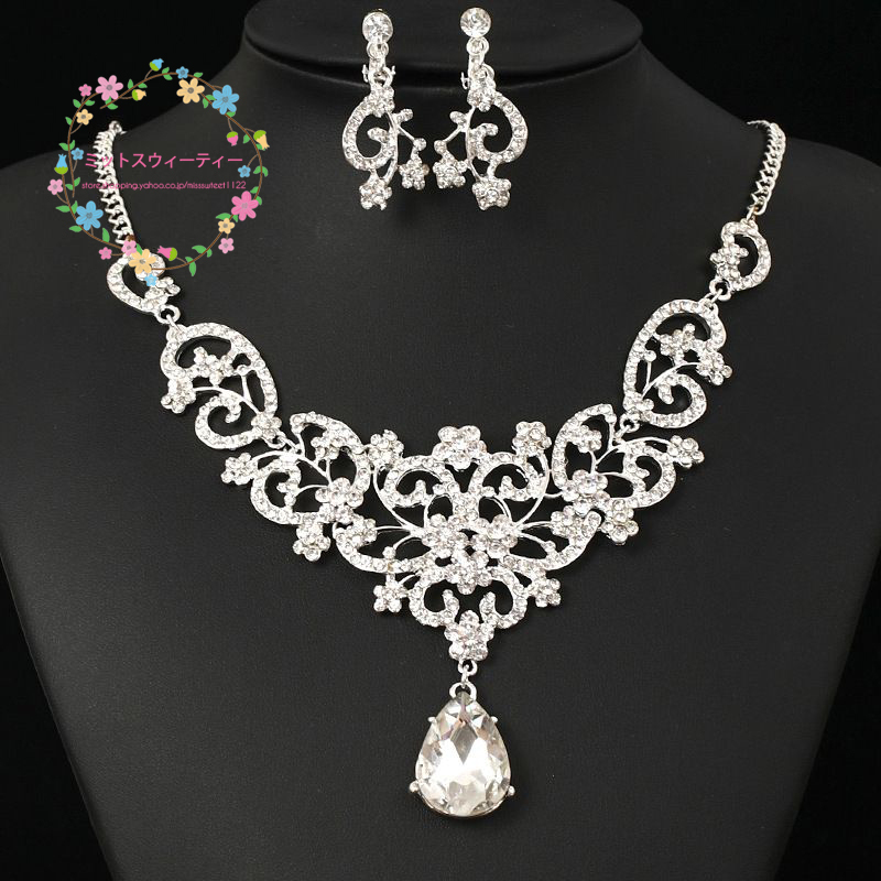 ウェディング ブライダル ネックレス パーティー ラインストーン ウエディング ジュエリー アクセサリー 2点 セット 小物 結婚式 花嫁 お呼ばれ 発表会