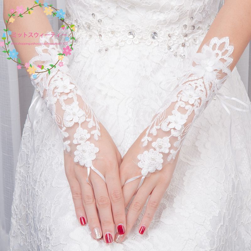 ブライダル用 ウエディンググローブ レース フィンガーレス レース ウェディンググローブ 結婚式 披露宴 二次会 パーティー 花嫁 ドレス用 ブライダル手袋 安い