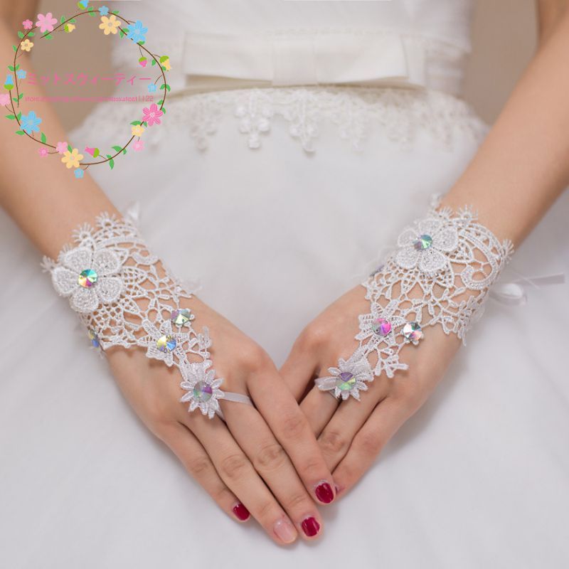 指なし手袋 フィンガーレスグローブ ショートグローブ ウェディンググローブ ブライダル手袋 刺繍 レース フラワー お花 ビジュー付き キラキラ 花嫁用品
