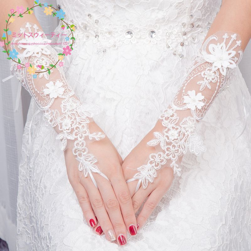 ウェディンググローブ フラワー レース 花 教会挙式 ブライダル用品 フィンガーレスグローブ 結婚式 披露宴 花嫁 フォトウェディング お洒落 シースルー 手袋