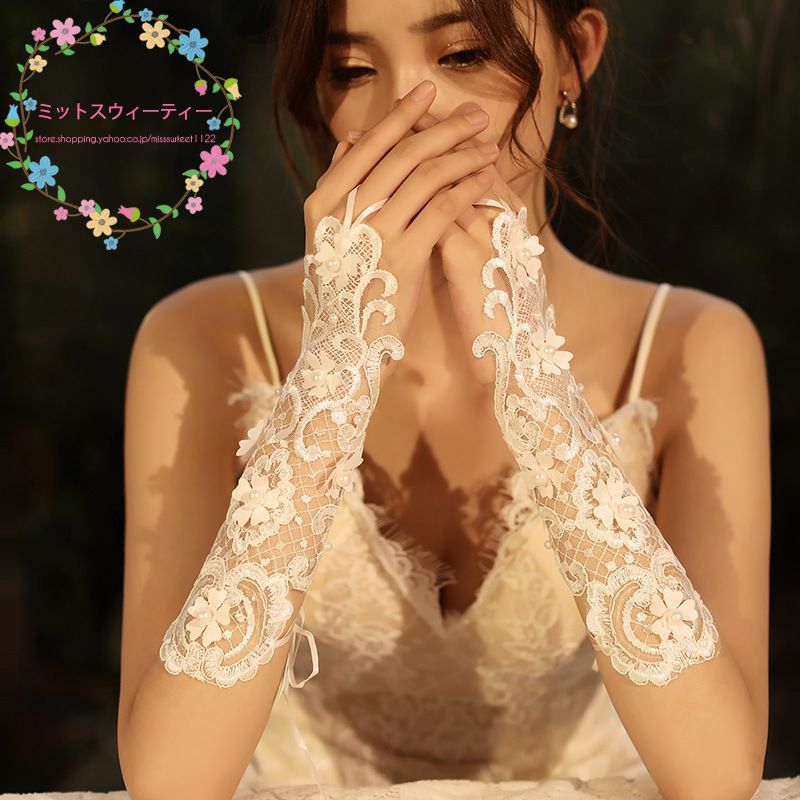ウェディンググローブ フィンガーレス グローブ 手袋 レース ウェディング小物 ウェディングドレス ブライダル 刺繍 ウエディンググ手袋 ブライダルグローブ
