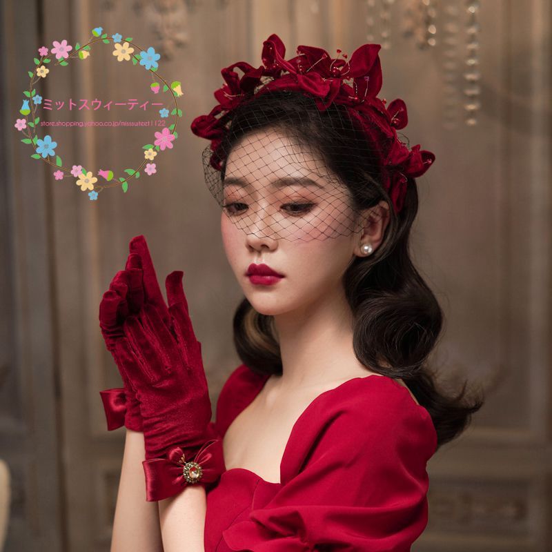ウエディンググローブ ショート ウェディング グローブ ブライダル 手袋 レッド 赤 ベルベット 結婚式 ウェディング パーティー 二次会 イベント ステージ
