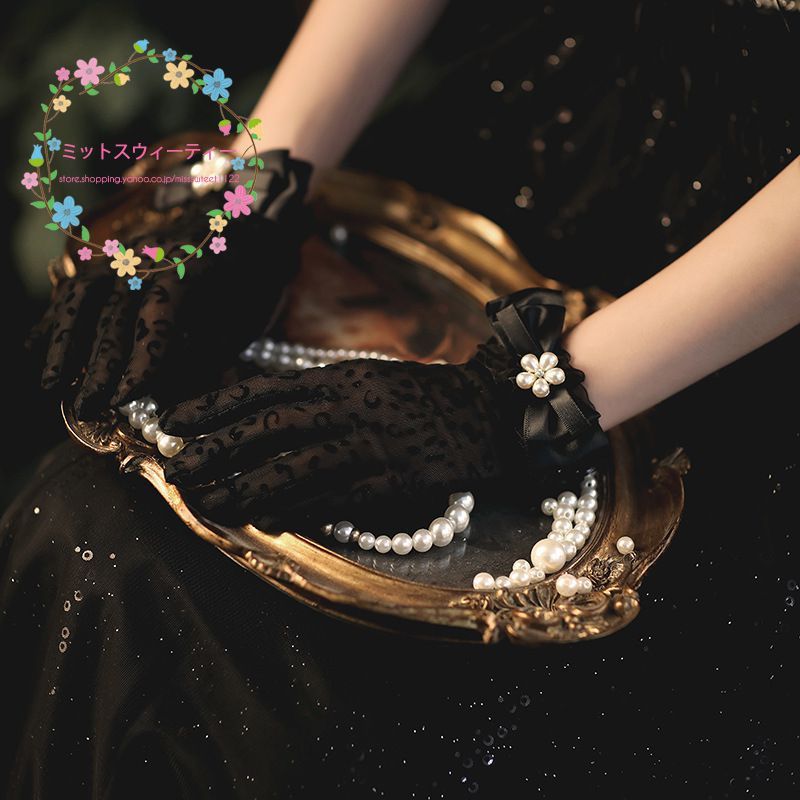 ウェディンググローブ ドレスグローブ ショートグローブ レース リボン 花 黒 ドレス手袋 ショート 結婚式 教会挙式 披露宴 ドレス 花嫁 発表会 フォーマル