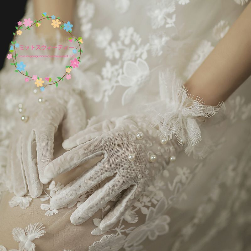 ウェディンググローブ レース 手袋 レディース パール ブライダル フリル ウェディング小物 ウェディングドレス フェミニン 結婚式 二次会 花嫁 パーティー