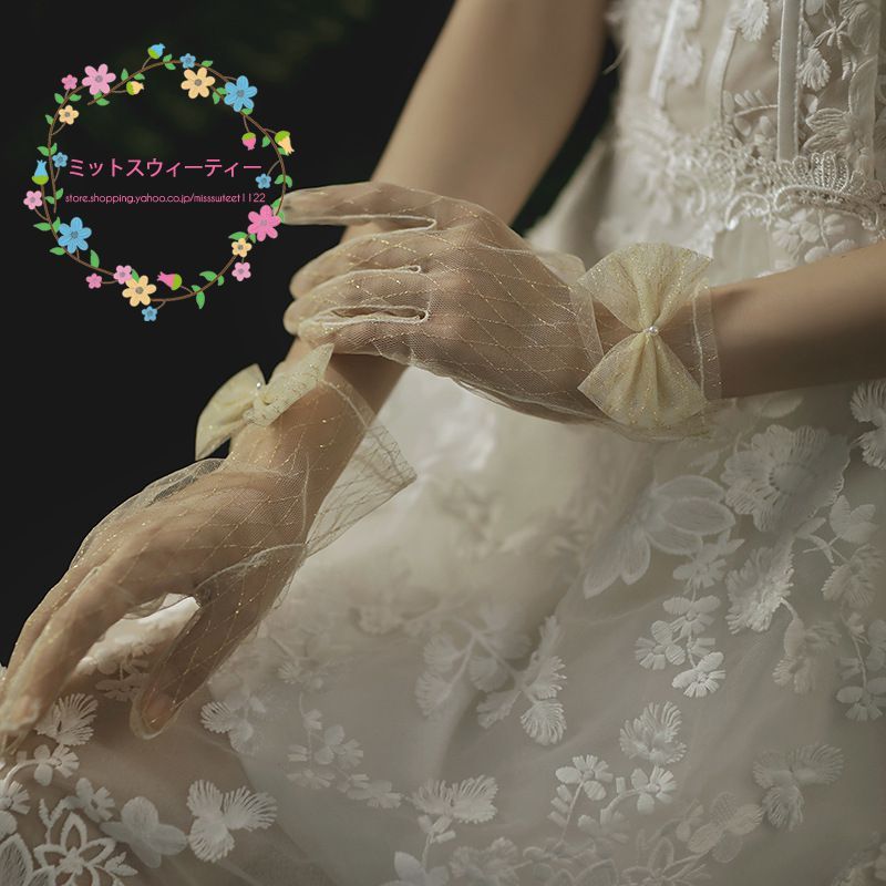 ウェディンググローブ ドレスグローブ ショートグローブ ドレス手袋 ショート リボン シャンパン 結婚式 挙式 披露宴 ドレス 花嫁 カラー手袋 発表会 卒業式