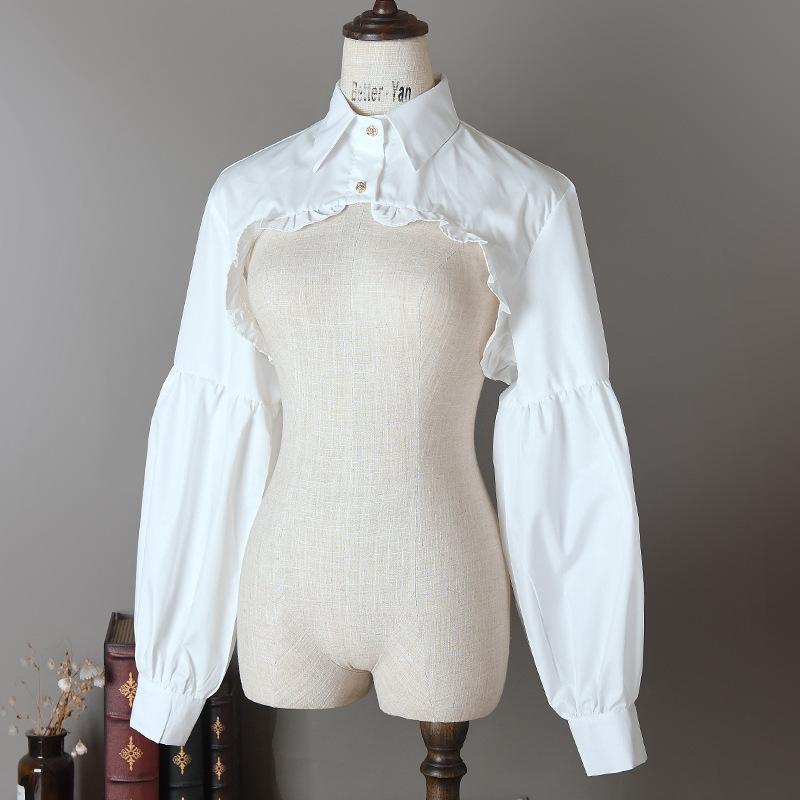 ショートシャツ ショートブラウス 長袖 ミニ クロップド丈 二の腕カバー パーティー ホワイト ブラック ビショップスリーブ 個性 ロリータ 地雷系女子