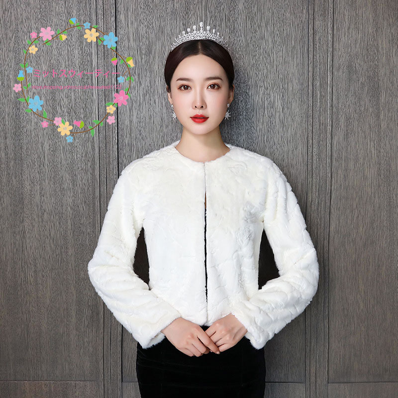 ウェディングショール 結婚式 ボレロ ブライダル 長袖 日常 ストール ケープ ファーショール フォーマル 花嫁 二次会 お呼ばれ フェイクファー 秋冬