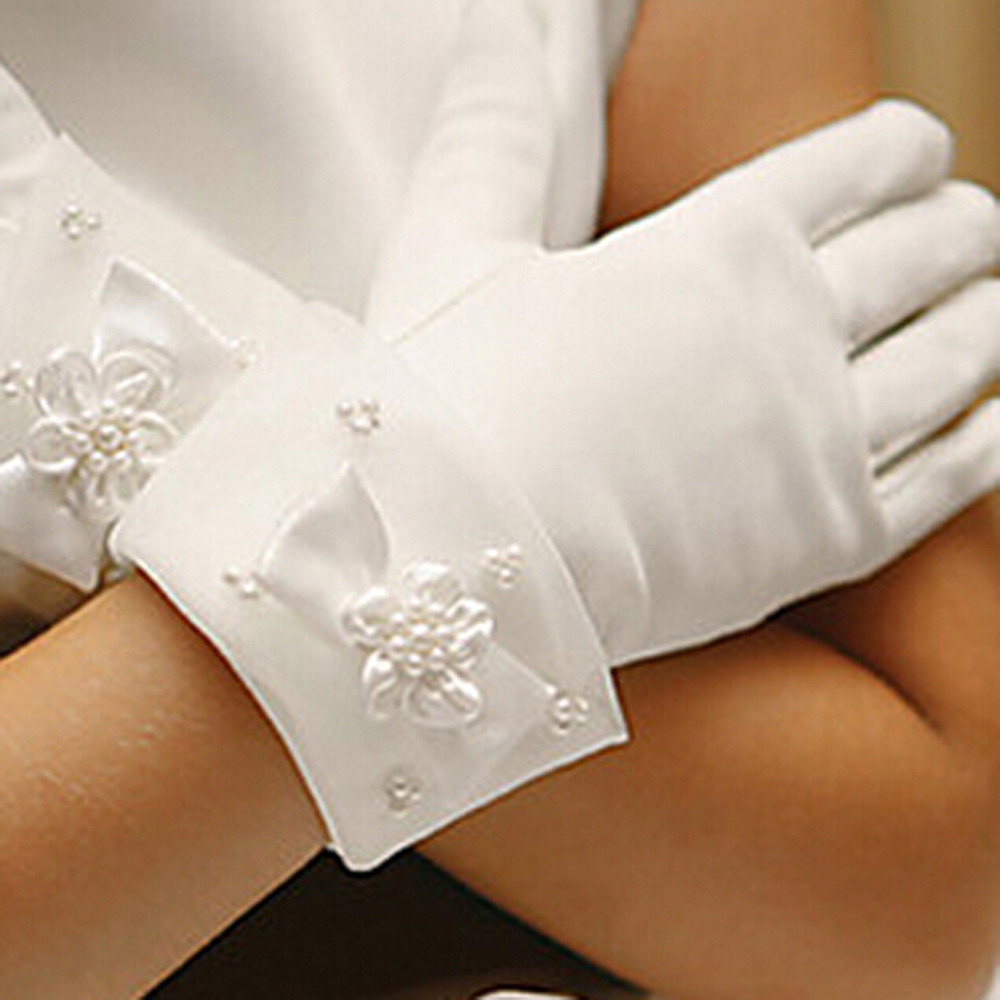 サテングローブ 子供用 フォーマル グローブ 結婚式 手袋 キッズ 女の子 ホワイト アクセサリー ストレッチ リボン 安い 発表会 ウェディング手袋
