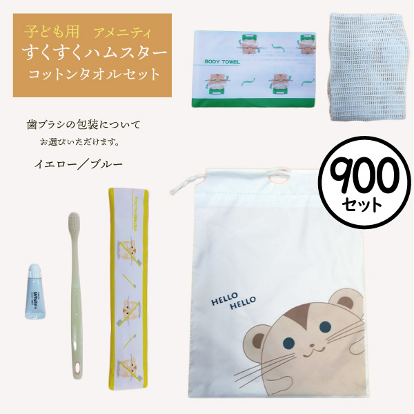 【900個セット】ボディタオルセット すくすくハムスター 子供用 ホテルアメニティセット【業務用】【歯ブラシ】【タオル】ホテル 旅館 宿泊 施設