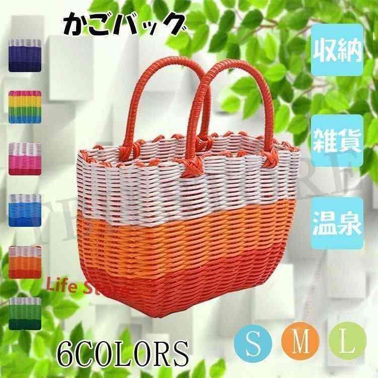 かごバッグ レディース 雑貨 バッグ ランチバッグ バスケットLサイズエコバッグ ビニールかごバッグ トートバッグ 収納 インテリア スパバッグ 温泉