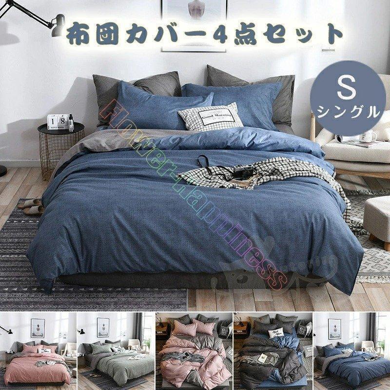 布団カバー 4点セット シングル セット おしゃれ 北欧 無地 和式 ベット 掛布団カバー 敷布団カバー 枕カバー ベッドシーツ 洋式 セット抗菌