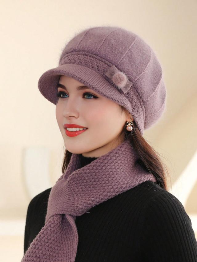 1個 ウィンター シニア マザーハット ぬくもりの温かい ウール帽子 ウィンター おばあちゃんハット 高齢者向け ニットハット 帽子 スカーフ、日常着用